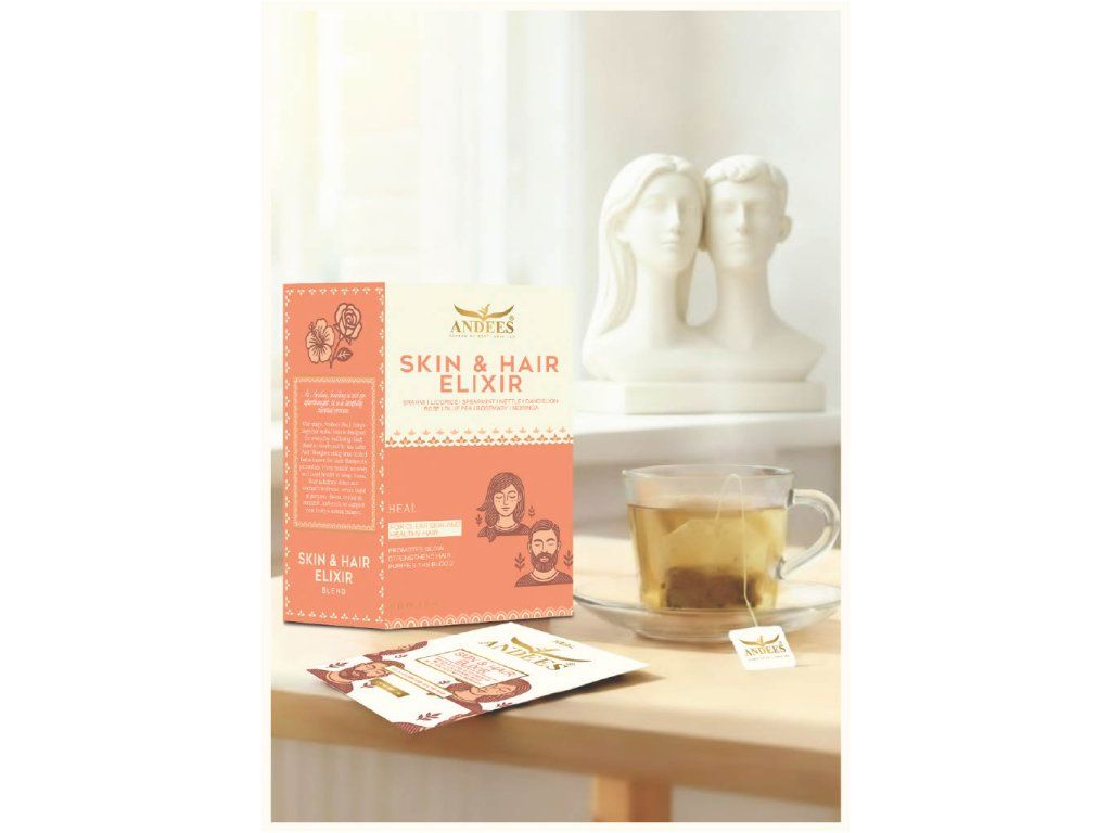 ANDEES Skin & Hair Elixir je bylinná čajová směs inspirovaná tradičními rostlinami, které jsou spojovány s péčí o přirozenou krásu. Kombinace bylin jako brahmi, lékořice, máta klasnatá, kopřiva, pampeliška, růže, modrý hrášek a rozmarýn vytváří harmonickou chuť a příjemný každodenní čajový rituál pro ty, kteří chtějí dopřát svému tělu vyváženou bylinnou směs jako součást zdravého životního stylu.