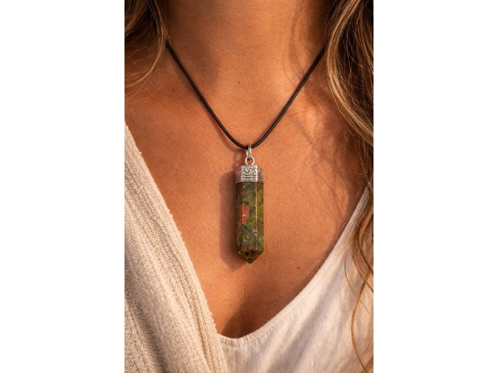 Zelený unakit je skvělým průvodcem při změnách a nových začátcích. Tvar hexagonu přináší stabilitu, ochranu a propojení s přírodními cykly. Tento přívěsek je tak nejen elegantním šperkem, ale také silným amuletem pro každodenní podporu vnitřní pohody.