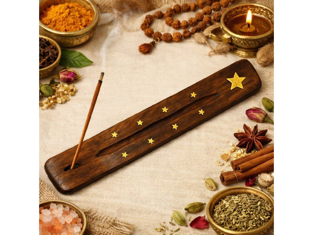 Dřevěný stojánek na vonné tyčinky je praktický doplněk pro bezpečné pálení vonných tyčinek. Díky otvoru na jednom konci drží tyčinku ve správné poloze, zatímco popel postupně padá na stojánek a udržuje prostor čistý.